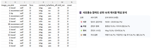 게시 후 노출, 저장, 댓글 데이터를 분석하여 가이드라인으로 제작, 다음 콘텐츠 전략에 반영합니다.